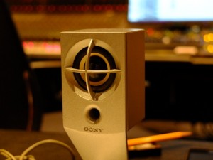 先日録音した曲のミックスダウンへ出かけてきました。いろいろなスピーカーでバランスなどを確認しますが、これは今日一番小さいモノ。小さいながらとても良い音です。