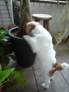 足が汚れると面倒、という理由でベランダには出してなかったのですが、掃除機に吠えるのでその間出してみると。エンジョイしてますね、シマっち。