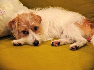 シャンプー、カット、爪切りを終えて、なぜか不機嫌なシマント(イタリア人ぽく呼ぶ時の名前)。シマ〜ントって感じで、いい声で。