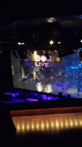 開演前、、5Fからステージとステージ後ろの窓の夜景をパシャリ。