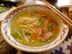 先日シマノビッチと散歩の途中、急にムショウに食べたくなって買った「サッポロ一番塩ラーメン」、久々でうまかったな〜