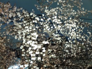 咲き始めましたね。ベランダの目の前に大きな桜の木があるので勝手にライトアップしてみましたよ。