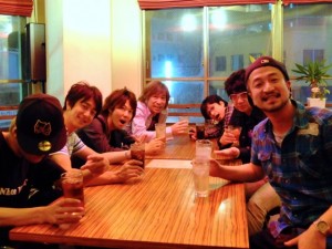 と同じく雨。終演後の打ち上げにて、男子メンバーで記念撮影です。