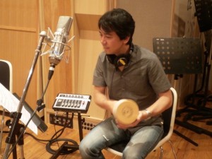 先日の録音の写真を送ってもらいました。なんとワタシがカバサを演奏しているショット。