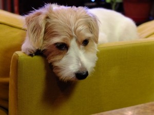 何故か仕事部屋に閉じ込められて焦り気味のシマちゃんです。面白いので写真撮った。