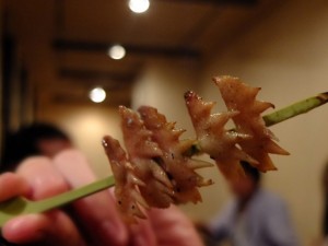 これは鶏冠(とさか)。リハーサル後に行った焼鳥屋にて。
