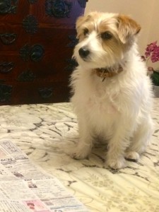 今日はシマちゃんを連れて実家へ。テーブルの上でちんまりしてます。
