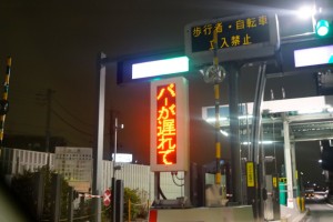高速道路のETCです。この表示を見るたびに、「‥‥」「バーが」「‥‥」「遅れて」「‥‥」「開きます」と、いっこく堂をマネて腹話術を試みます。