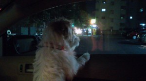 「わたしもコジマに入りたいのに〜」の図。近所のペットショップの駐車場にて。