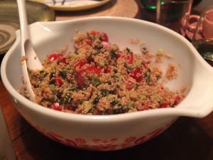 写真はキヌア、ヒエやアワのような穀物。野菜を加えて本当においしいです。その他数々のプロ級の料理を振る舞っていただきました。社長、天才!