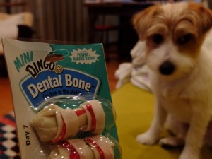 ハワイ土産で頂いた犬用デンタルグッズ。カミカミするうちに歯が磨かれて一週間で綺麗になる、のかな?シマちゃんはあっという間に食べてしまうから効果は薄かろう。